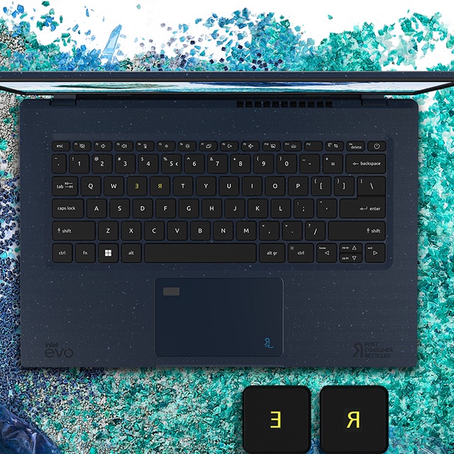 • Material : PCR with Rubber, Laser Finishing • Security : Smart Fingerprint Reader (on touchpad) • Keyboard : Backlight Keyboard