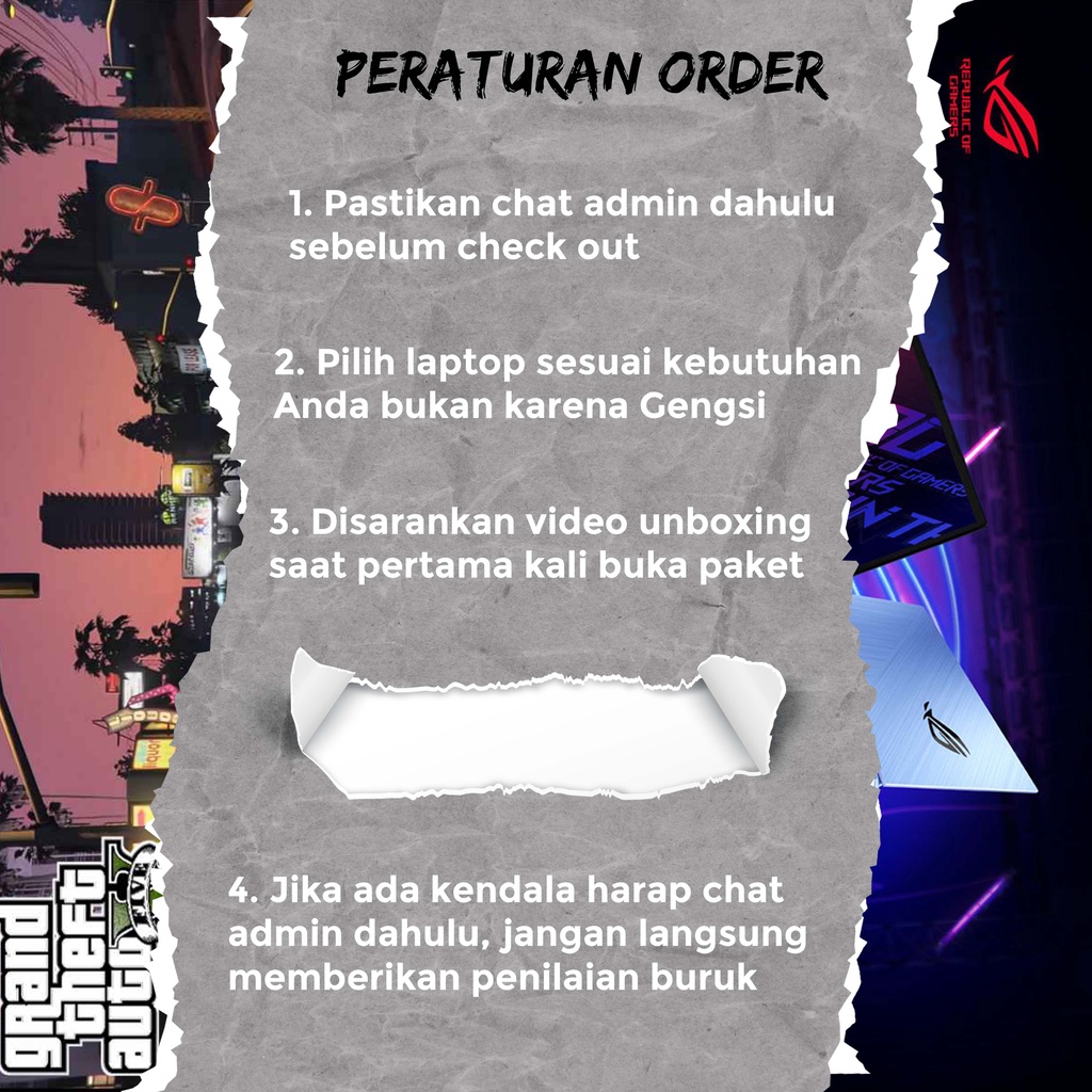 Kelengkapan : Laptop, Adapter Charger (AC), Tas & Mouse Kondisi : Fisik 95%, Hardware teruji normal (Sudah melewati Tes QC) Software : Google, Microsoft Office (Word , Excel , Power Point), Whatsapp, Zoom ( Standar Pemakaian Kantor, Rumahan)