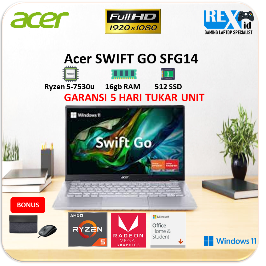 Detail ACER SWIFT GO SFG14 (Ryzen 5 7530u 16gb 512ssd Vega W11+OHS 14.0inch FHD)