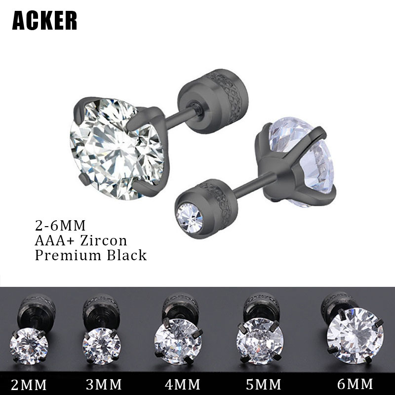 Aksesoris Fashion > Anting > [ACKER] 2-6mm 1pasang Anting Tusuk Cubic Zirconia Titanium Stainless Diamond AAA+Zircon Untuk Wanita