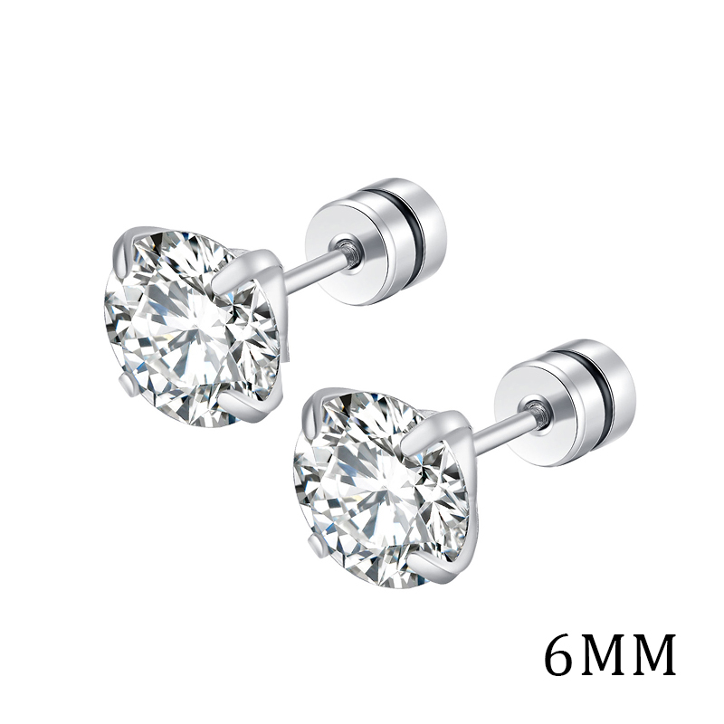 Aksesoris Fashion > Anting > [ACKER] 6mm 1pasang 925silver Titanium Stainless Cubic Zirconia Diamond AAA+ Anting Tusuk Zircon Untuk Wanita /Pria