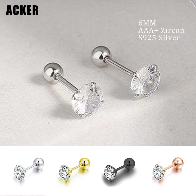 Detail [ACKER] 6mm 1pasang925silver Cubic Zirconia Titanium Stainless Berlian AAA+Zircon Anting Tusuk Untuk Wanita