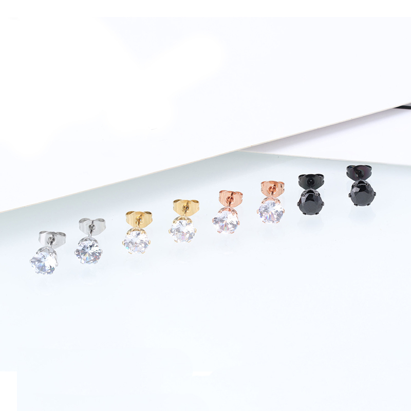 Detail [ACKER] 7mm 1pasang Anting Tusuk Cubic Zirconia Titanium Stainless Diamond AAA+Zircon Untuk Wanita /Pria