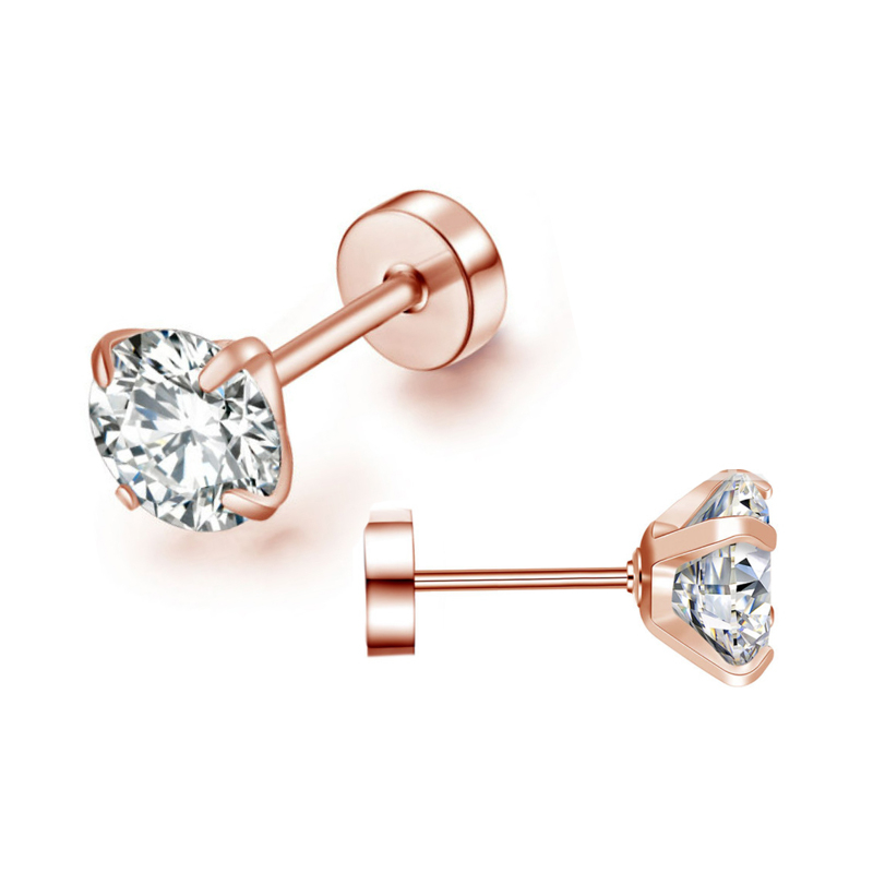 Detail [ACKER] 7mm 1pasang Anting Tusuk Titanium Stainless Cubic Zirconia Vacuum Plating Diamond AAA+Zircon Untuk Pria/Wanita