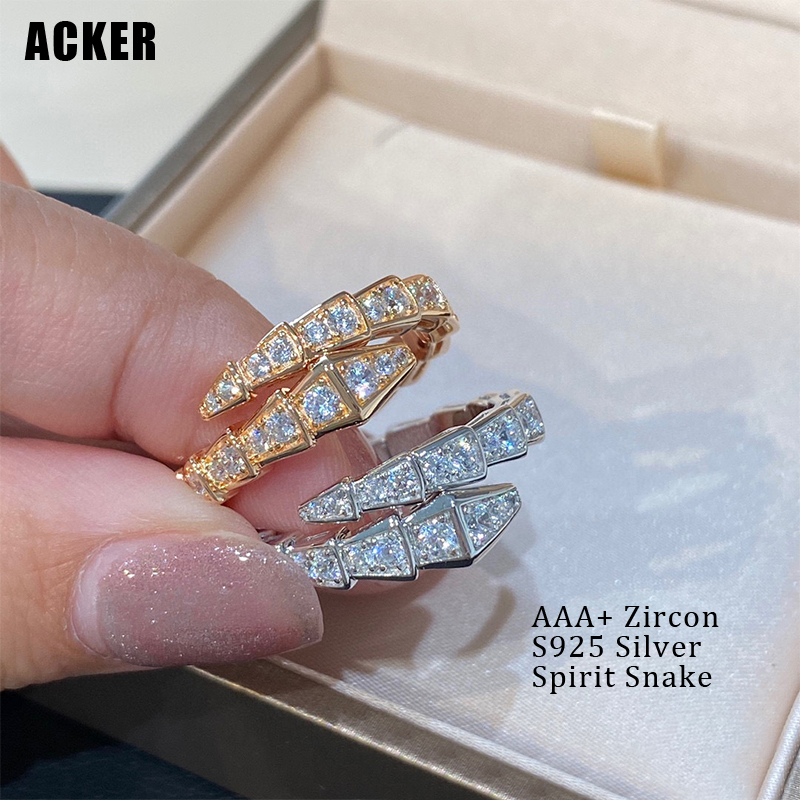 Detail [ACKER] Cincin Emas 18K Cubic Zirconia Titanium Stainless Diamond AAA+Zircon Ular Untuk Wanita