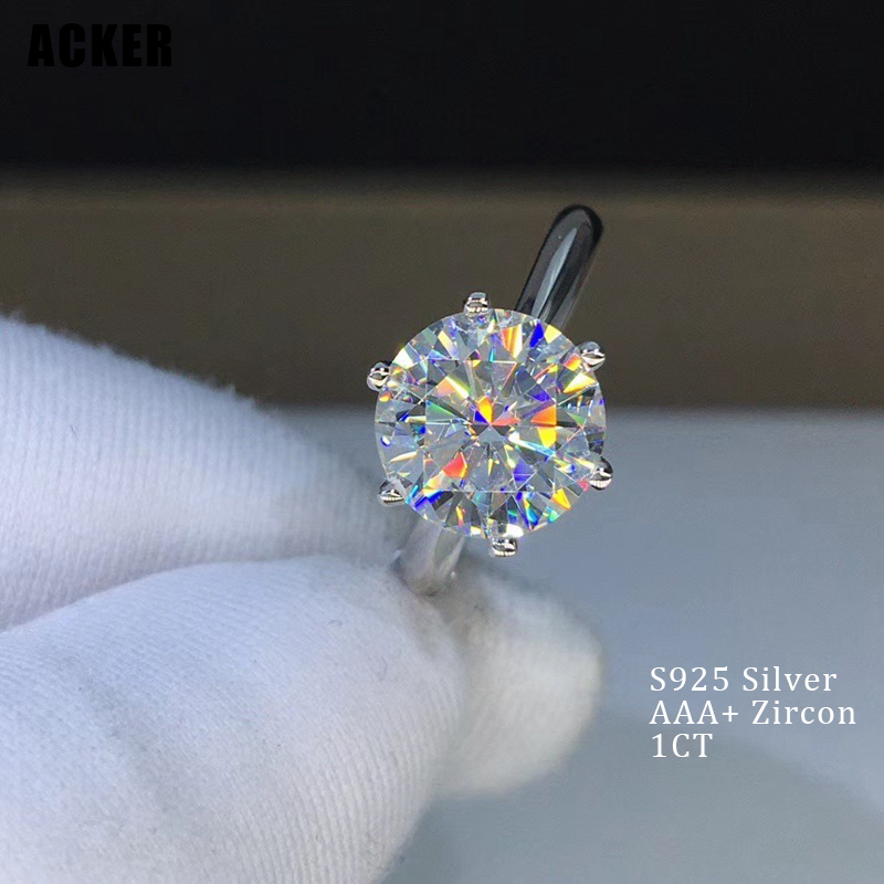 Detail [ACKER] Cincin Perak 1CT Moissanite Cubic Zirconia Titanium Stainless Diamond AAA+Zircon Ular Untuk Wanita