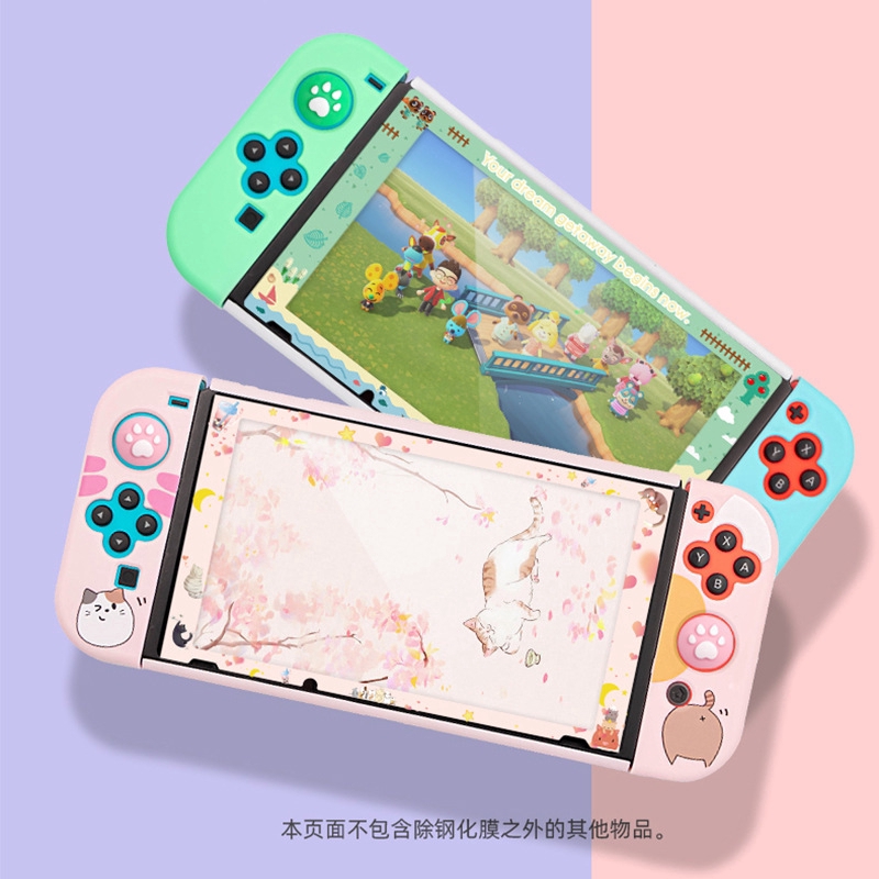 Detail Acnh Pelindung Layar Tempered Glass 9h Motif Kartun Kucing Silang Untuk Nintendo Switch