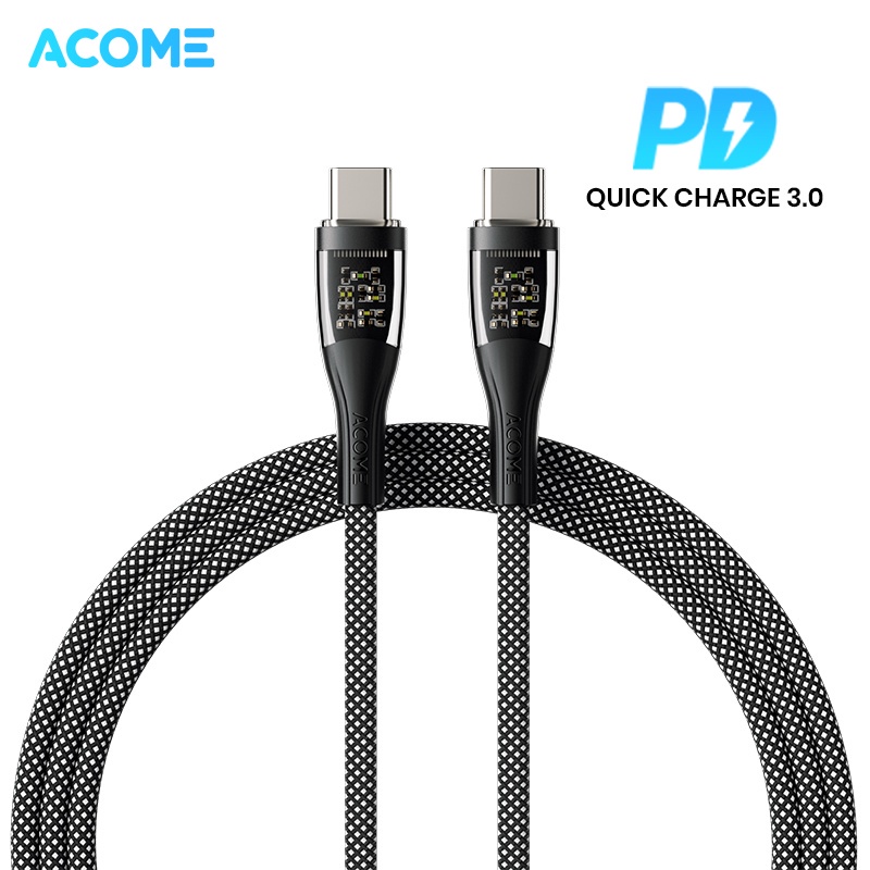 Handphone & Aksesoris > Kabel, Charger, & Konverter > Kabel & Adaptor Handphone > ACOME APD010T Kabel Data PD Type C to Type C 100cm Fast Charging 60 Watt Original - Garansi Resmi 1 Tahun