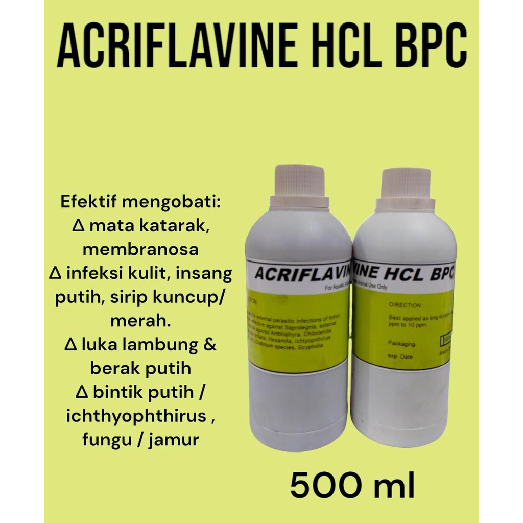 Acriflavine HCL BPC adalah antiseptik yang mampu menghambat sekaligus membunuh pertumbuhan mikroorganisme dan bakteri yang merugikan ikan. Juga ampuh untuk mengatasi masalah pembusukan insang dan mengatasi masalah jamur pada telur ikan serta Oodinium. Perlu diperhatikan poin-poin berikut pada penggunaan Acriflavine:
