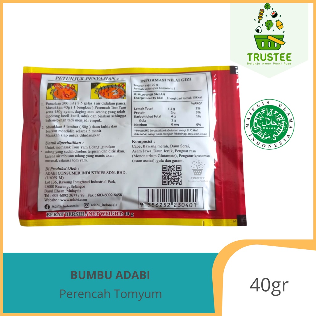 Detail Adabi Bumbu Perencah Tom Yam / Tom Yum Paste Sachet Halal 40gr