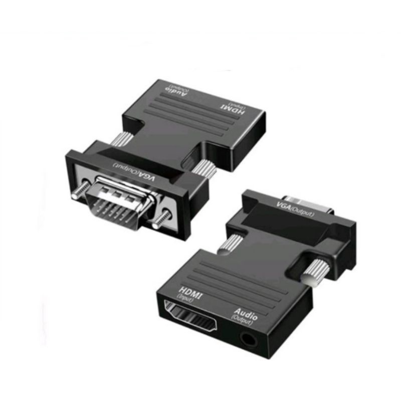 Adapter konverter dari HDMI Female ke VGA Male atau HDMI Male ke VGA Female. Adapter ini mendukung video hingga 1080p. Adapter konverter HDMI ini juga hadir dengan plug Audio untuk menghantar suara.