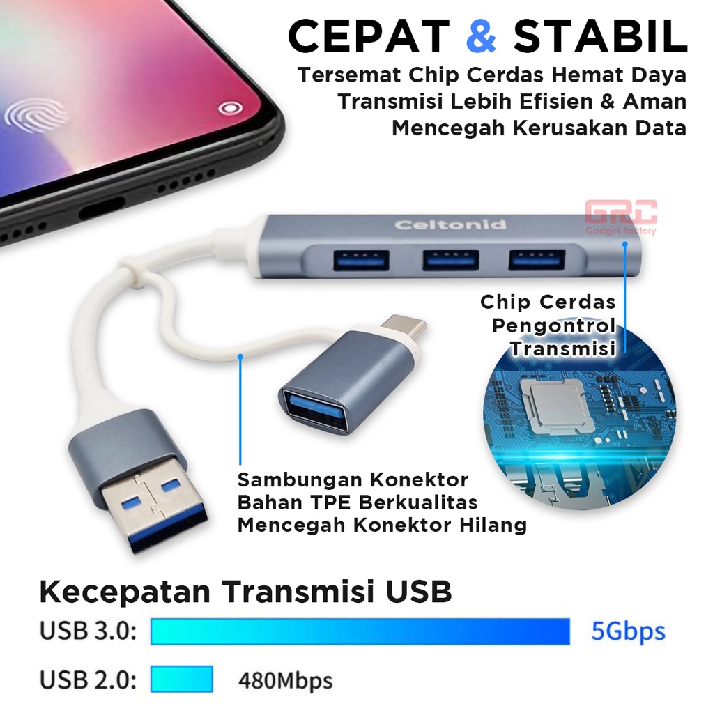 ⭐️ CELTONID 4in1 USB Type-C OTG HUB Adapter Micro SD TF Card Reader ✔️ Material Berkualitas ✔️ Plug & Play ✔️ Ringan & Portable ✔️ Adapter Tetap Aman