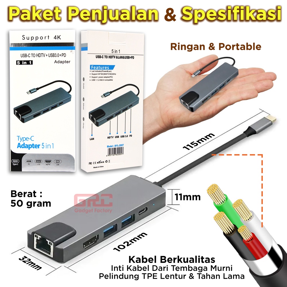 Detail Adapter HUB Converter Type C to 5 Port USB PD HDMI LAN 5 in 1