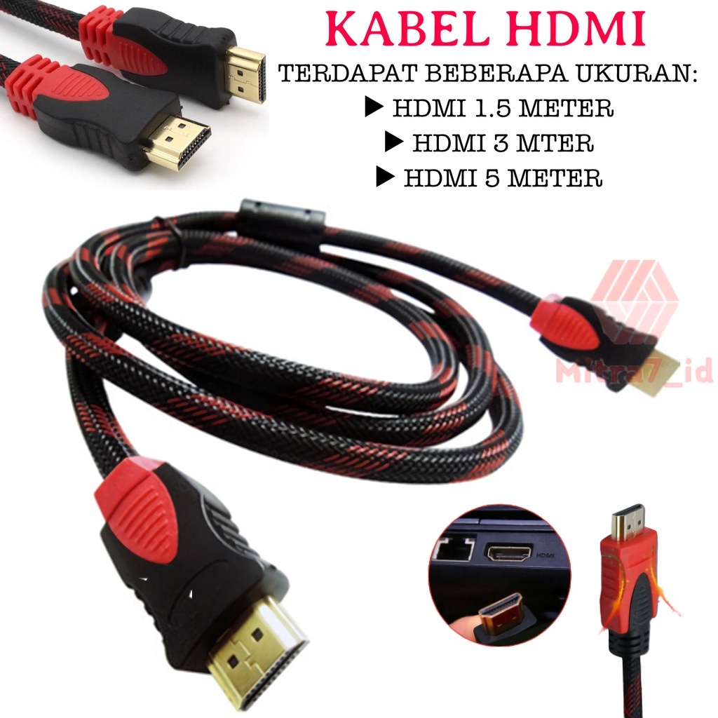 SPESIFIKASI : ✔ HDMI TYPE: 1.4 VERSION ✔ CONNECTOR TYPE : GOLD PLATED/NICKEL PLATED ✔ COLORS : BLACK AND RED ✔ MATERIALS : NYLON BRAIDED MESH,COPPER,PVC ✔ LENGTH : 1.5 METER, 3 METER, 5 METER ✔ OD : 6.8-8.5MM ✔ CABLE TYPE : ROUND TYPE ✔ PACKAGING : PLASTIK ✔ USAGE : HDTV,HOME THEATER,DVD LAYER,PROJECTOR,PRINTER,COMPUTER ETC,SET TOP BOX