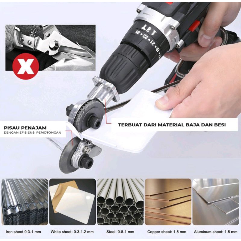 -Adaptor bor pemotong seng atau Alat Pemotong seng yang dapat di hubungkan ke segala jenis bor -Berfungsi untuk memotong menjadi potongan yang lurus rapi -Mempercepat waktu pekerjaan, efisien dan penggunaan yang mudah -Pemotong Tajam -Material terbuat dari Baja dan Besi -Bentuk Kokoh tidak Mudah rusak.
