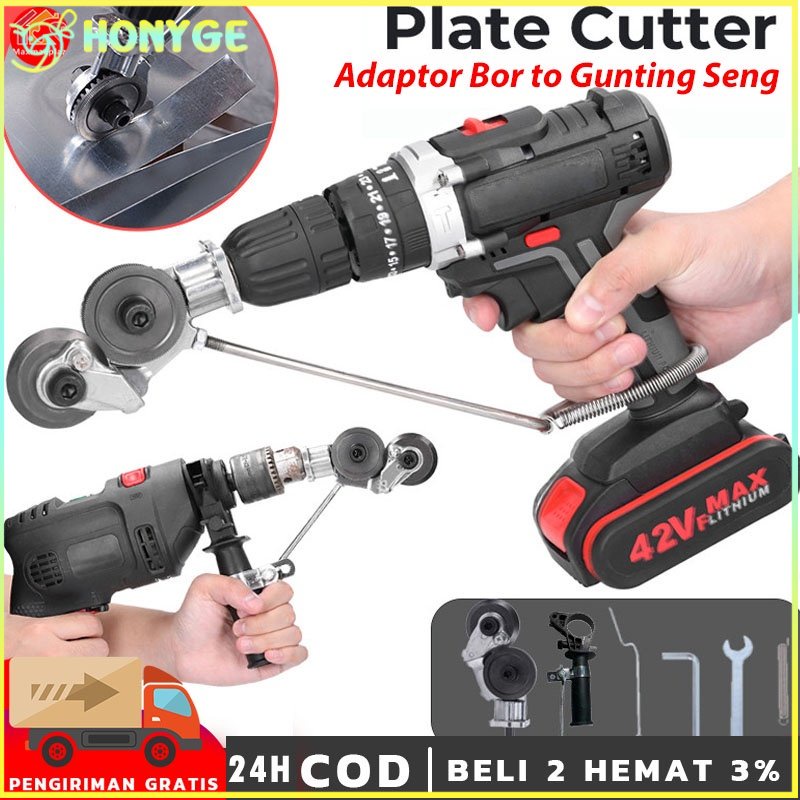 Adaptor Bor to Gunting Seng - Gunting holo bor elektrik iron Shredder Alat Pemotong Lembaran Logam Kepala Ganda