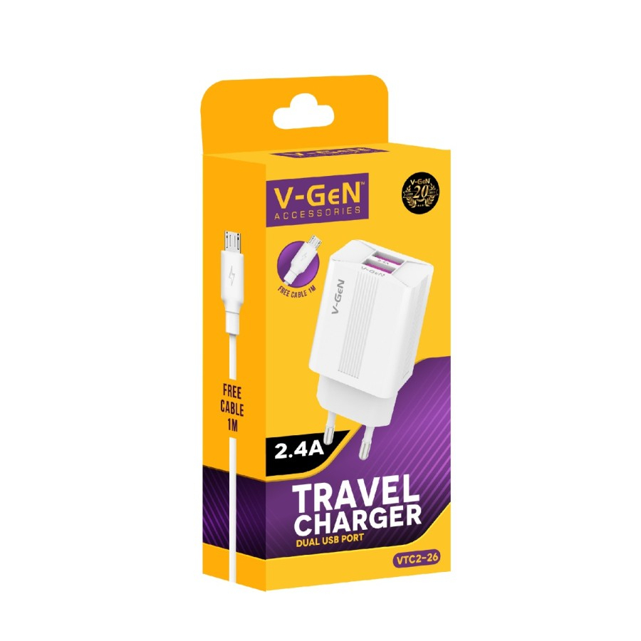 Detail Adaptor Charger V-GeN VTC2-26 2.4A Dual Port USB Travel Charger VGEN