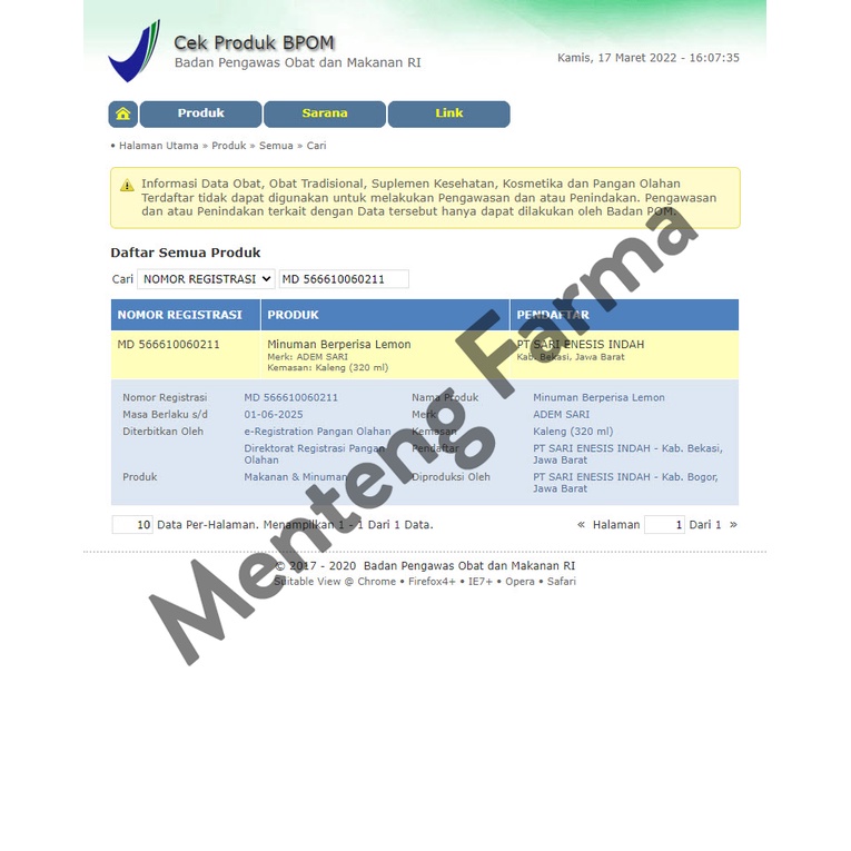 Cara Penyimpanan: Simpan di tempat sejuk dengan suhu di bawah 35ºC.