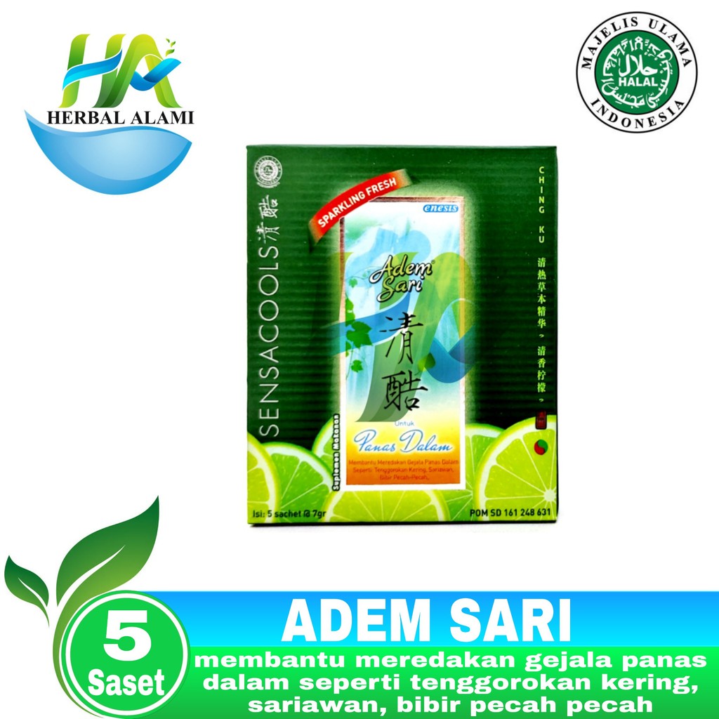 Adem Sari Ching Ku untuk membantu meredakan gejala panas dalam seperti tenggorokan kering, sariawan dan bibir pecah-pecah.
