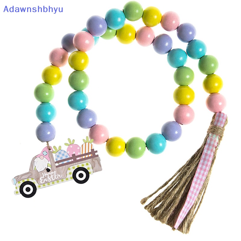 Perlengkapan Rumah > Dekorasi > Dekorasi Lainnya > Adhyu 1Pcs Manik-Manik Kayu Paskah Garland Manik-Manik Warna-Warni Dengan Tali Rami Kotak-Kotak Rumbai ID