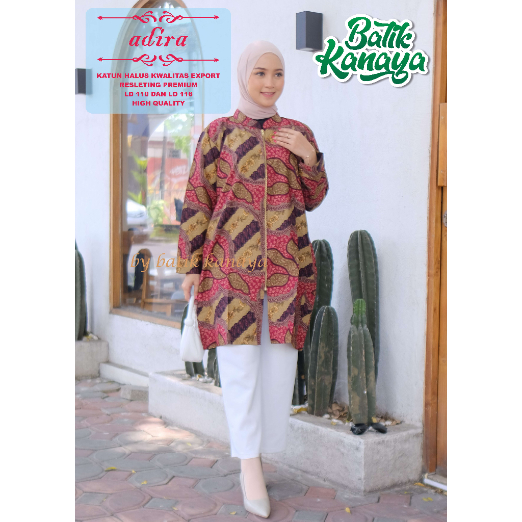 ADIRA Atasan Baju Batik Wanita Bahan Katun Kualitas Ekspor Busui Resleting Jumbo