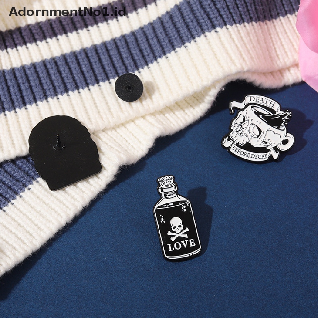 Detail (AdornmentNo1) Bros Pin Enamel Desain Tengkorak Botol Hitam Gaya Punk