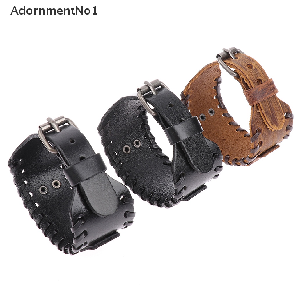 Detail (AdornmentNo1) Gelang Tangan Kulit Lebar Adjustable Motif Kepala Serigala Gaya Punk Untuk Pria