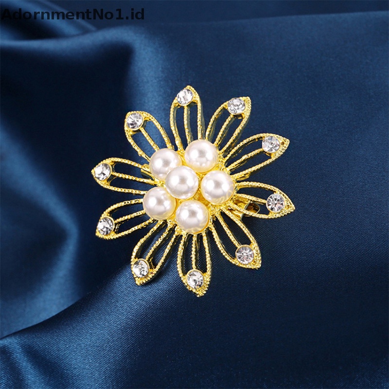 [AdornmentNo1] Logam Mutiara Warna Emas Bunga Bros Wanita Populer Elegan Pesta Lencana Dekorasi Fashion Perhiasan [ID]