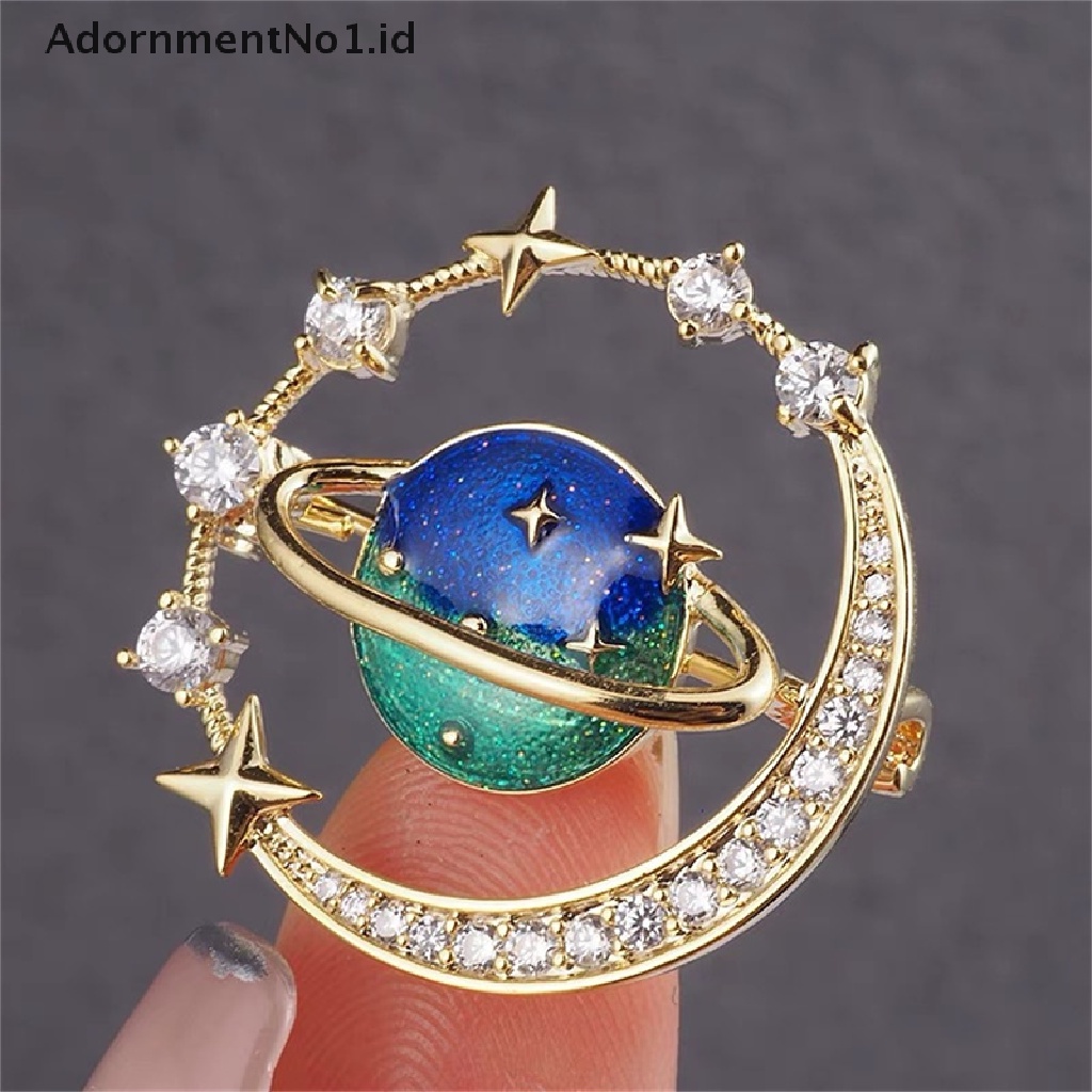 Detail [AdornmentNo1] Lucu Bumi Bulan Bintang Bros Planet Biru Anti Liar Pin Mantel Syal Bros Perhiasan [ID]