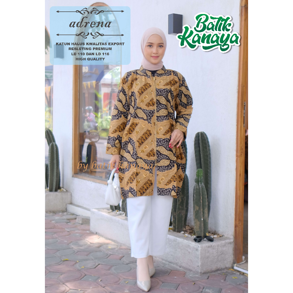ADRENA Atasan Baju Batik Wanita Bahan Katun Kualitas Ekspor Busui Resleting Jumbo