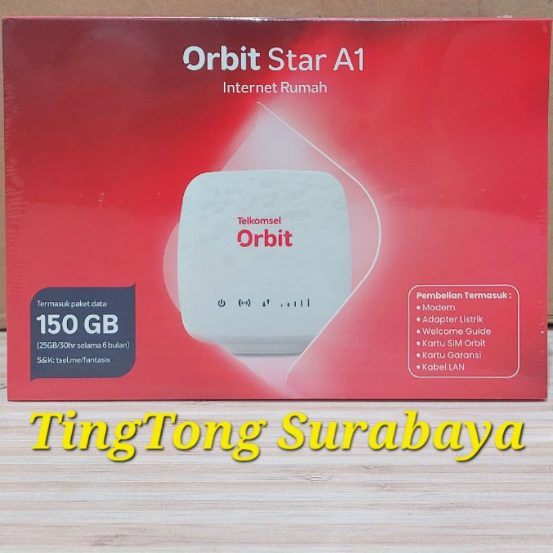Termasuk dalam pembelian: - Modem Orbit Star A1 - AC Adapter - Kartu SIM Orbit data 150 GB - Kartu panduan - Kabel LAN - Kartu Garansi Modem