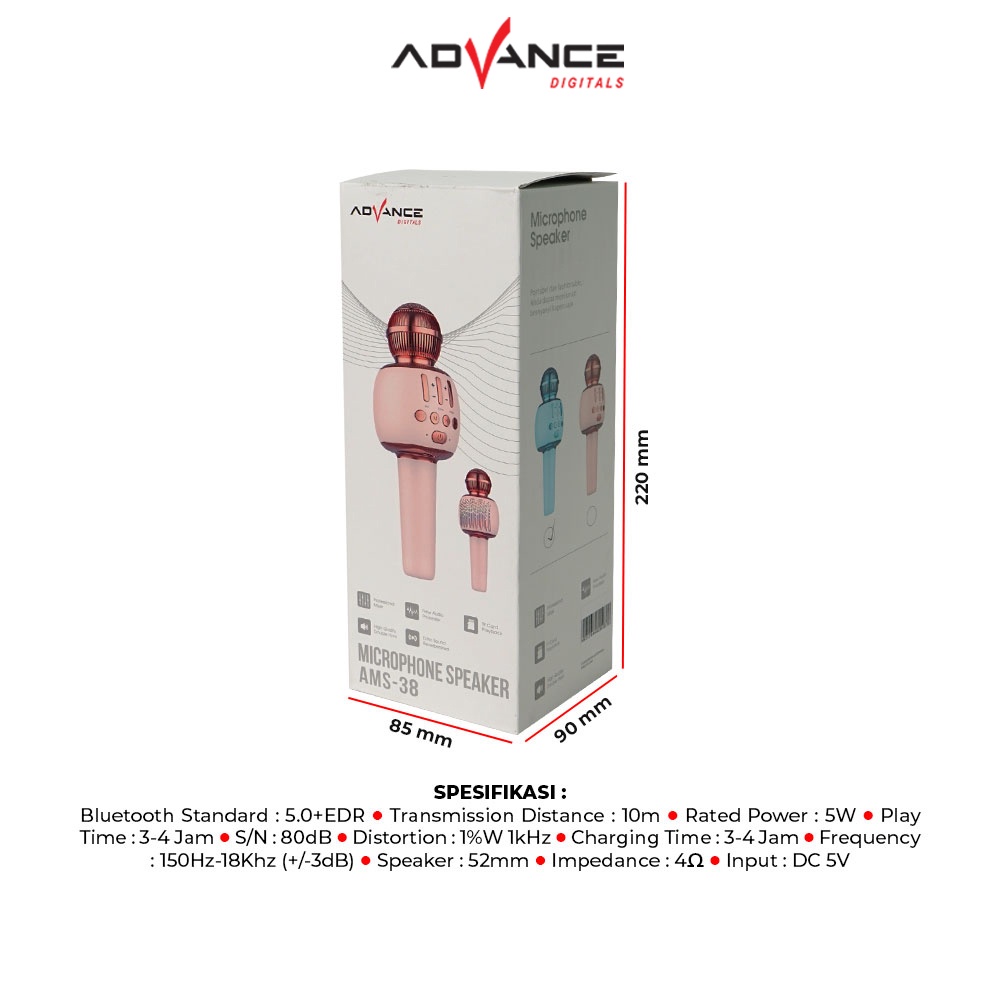 Detail Advance AMS-38 Mic Karaoke Bluetooth Portable Microphone Bluetooth Speaker