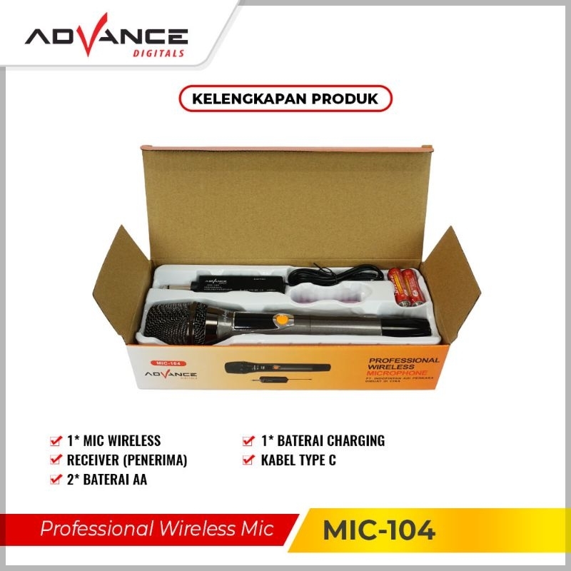 Detail Advance Microphone Mic Single Wireless + Receiver MIC 104