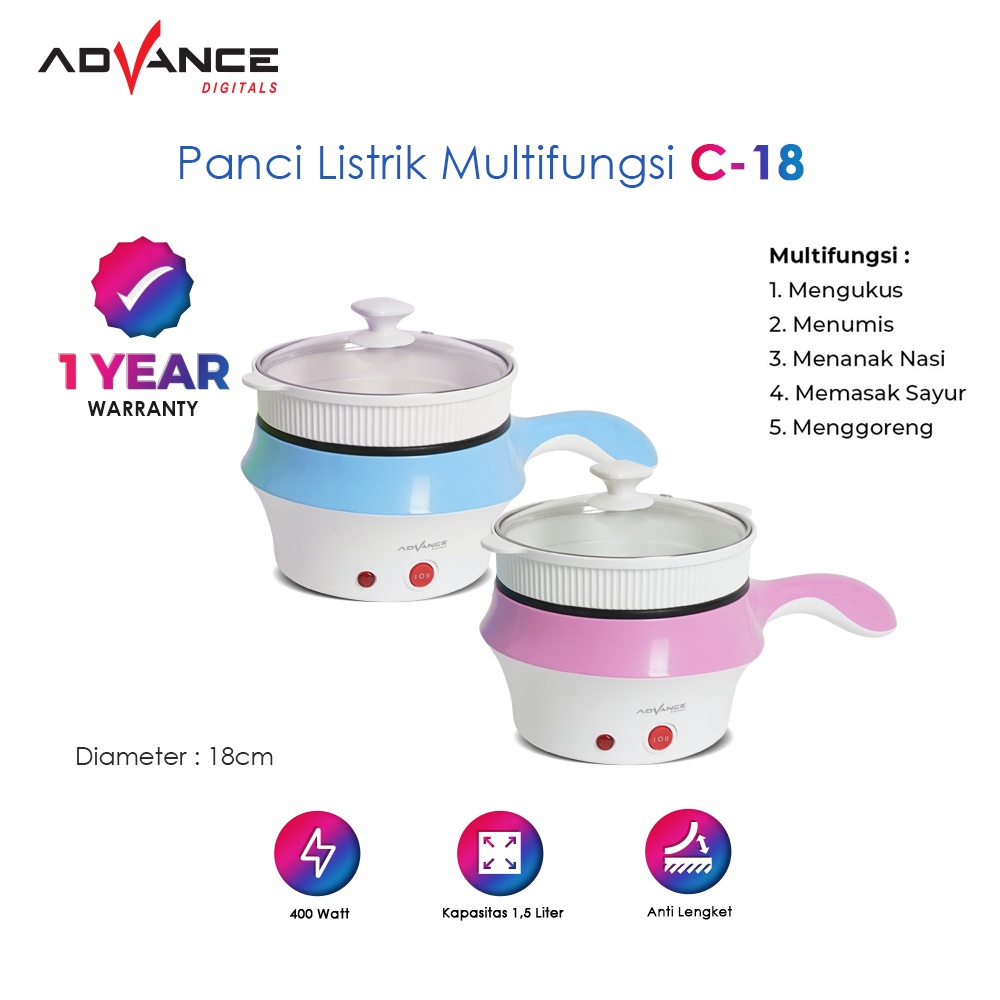 Detail ADVANCE Panci Listrik 1.5L Serbaguna Multifungsi Electric Panci Pengukus Plastik C18