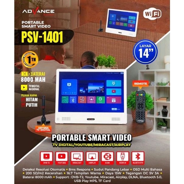Detail Advance Portable Smart TV Digital 14" / Video / Wifi PSV-1401