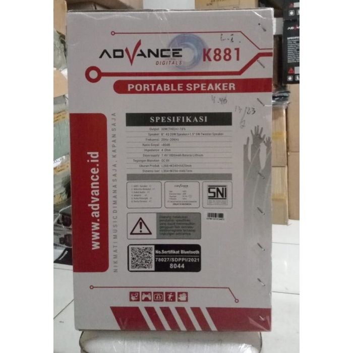 Detail Advance Speaker Bluetooth Portable K881 V3 + 1 Mic Wireless