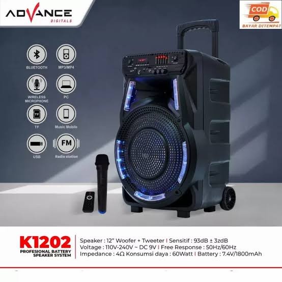 Detail Advance Speaker meeting bluetooth K 1202 ukuran jumbo speaker 12 inci