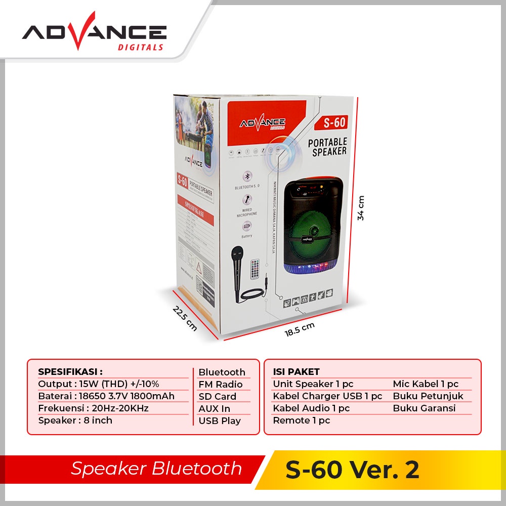 Advance S-60 Speaker Portable Bluetooth - S60 Karaoke / Speaker Advance Bluetooth Music & Karaoke S-60 8inch / S60 8" Free Mic