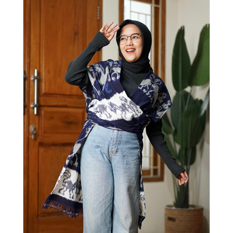 Your browser does not support the video tag.Video perkenalan produk AEC ARUNA Outer Tenun Long Cardigan (Unisex). Sumber: Shopee.