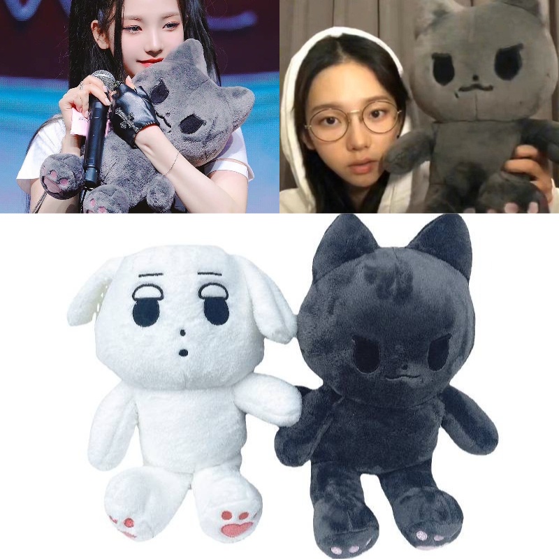 Detail Aespa Luizhimin Dan Kim Minjung's Plushies Grey Cat And White Dog, 40cm, Pendek Mewah
