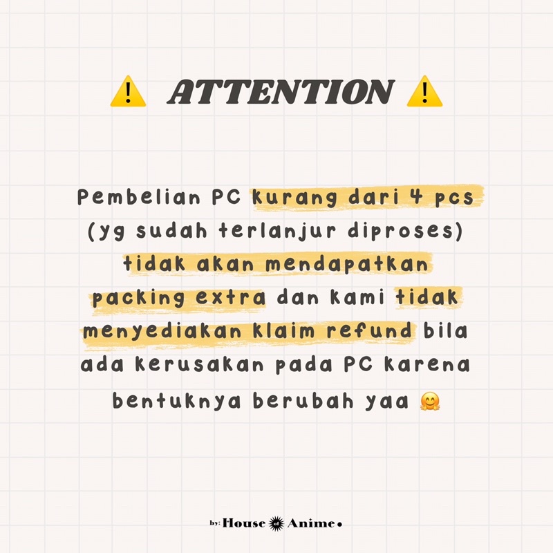 ⚠️ Min. pembelian 4 PC yaa (boleh gabung dengan idol lain). Kurang dari itu mohon maaf belum bisa kami proses 🙏🏼