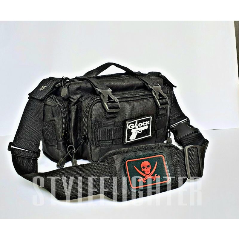 Detail afd warior aksesoris hitam tas selempang tactical kapasitas 6L free path