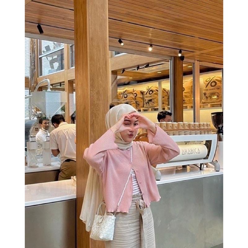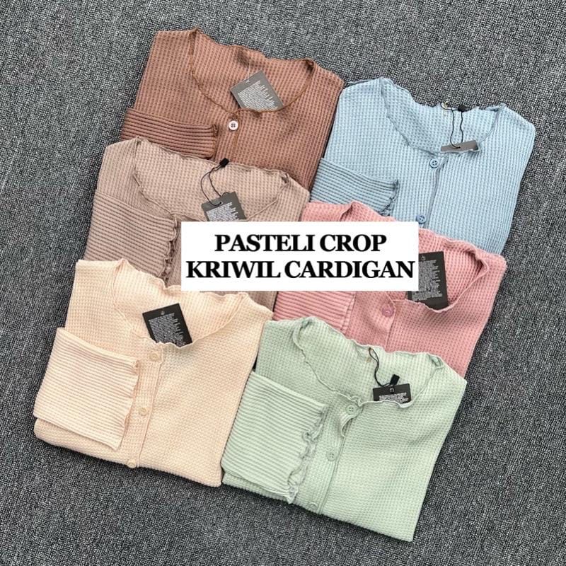 Pasteli Crop Kriwil Cardigan Bahan WAFFLE Detail Ukuran :