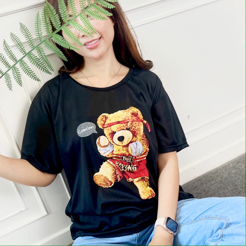 Kaos Oversize Wanita Bear Boxing Bahan PE Rayon Fit XL