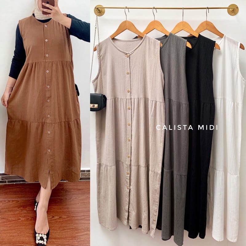 Calista Midi Dress CRINCLE Bahan PREMIUM CEY AIRFLOW CRINKLE Detail Ukuran :