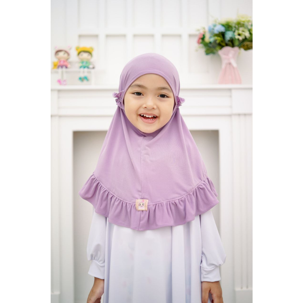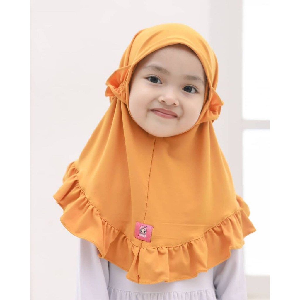 Bahan: jersey Premium Karakteristik: −Bahan yang sudah pasti adem, lembut dan nyaman dipakai anak. −Bagian atas jilbab terdapat tali karet curly yg elastis, sehingga membuat Jilbab ini terlihat manis dan cantik. −Tidak akan melorot meski tanpa tali.