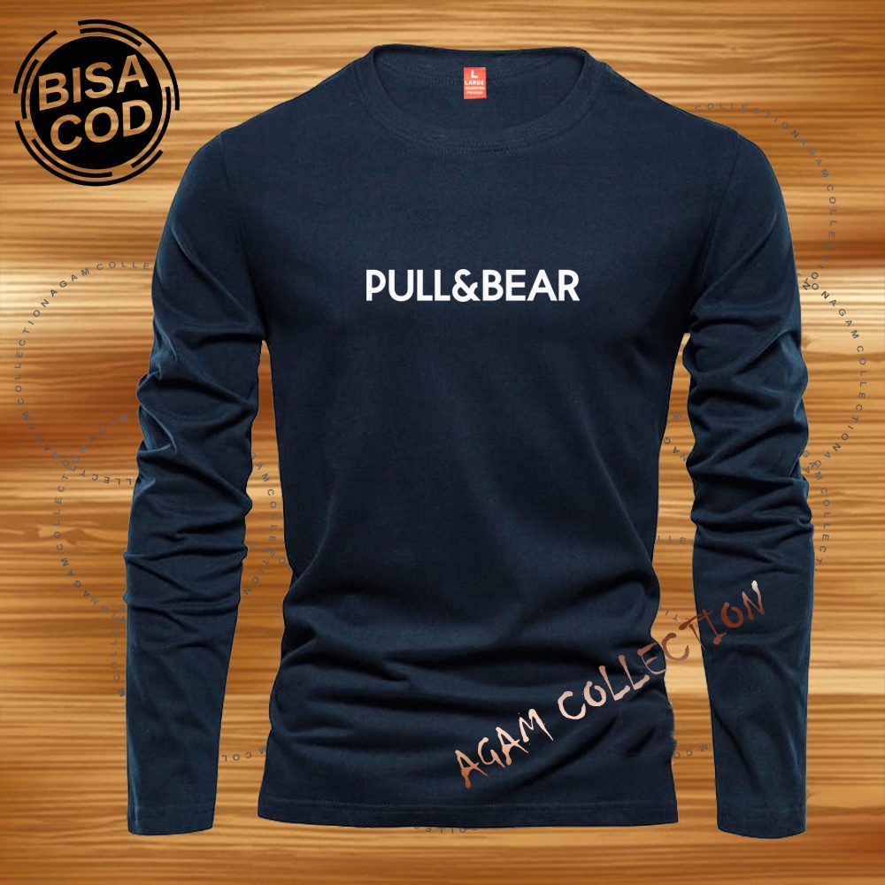 Detail Agam Collection Baju Kaos Distro Pull&Bear Text Putih Lengan Panjang Premium Quality Kaos Pria Keren Kaos Cewek/Cowok