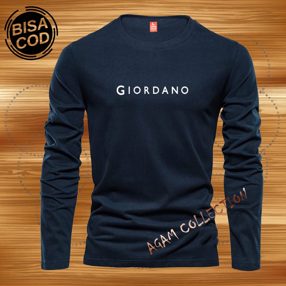 Detail Agam Collection Baju Kaos Distro Giordno Text Putih Lengan Panjang Premium Quality Kaos Pria Keren Kaos Cewek/Cowok