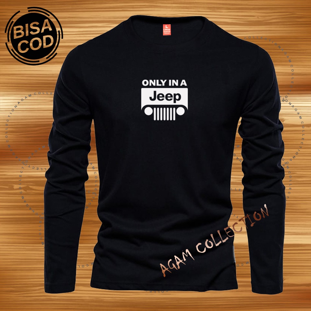 Detail Agam Collection Baju Kaos Distro only jeep Text Putih Lengan Panjang Premium Quality Kaos Pria Keren Kaos Cewek/Cowok