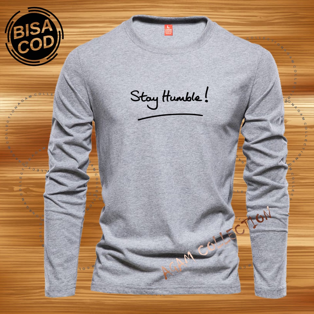 Detail Agam Collection Baju Kaos Distro Stay Humble Text Hitam Lengan Panjang Premium Quality Kaos Pria Keren Kaos Cewek/Cowok